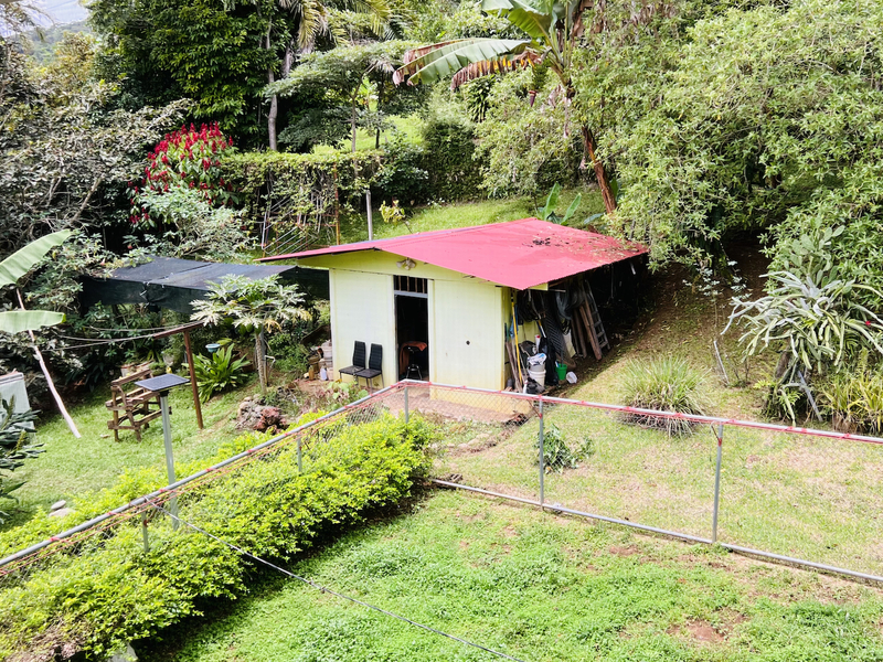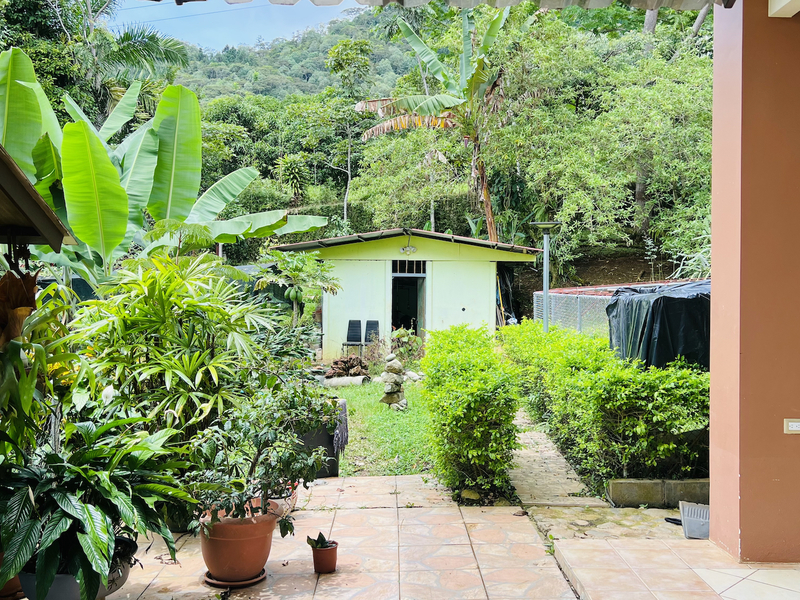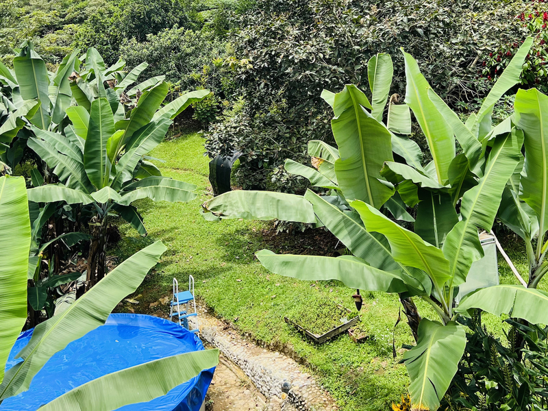 El terreno está rodeado por una pared natural de bambú ornamental de 2 metros de altura, que brinda privacidad y un toque de belleza natural. También posee un vivero de orquídeas y más de 40 especies de árboles exóticos y frutales, como cedro y colón.